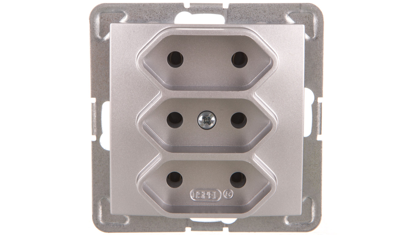 IMPRESJA Gniazdo potrójne b/u 2,5A EURO srebro GP-3Y/m/18
