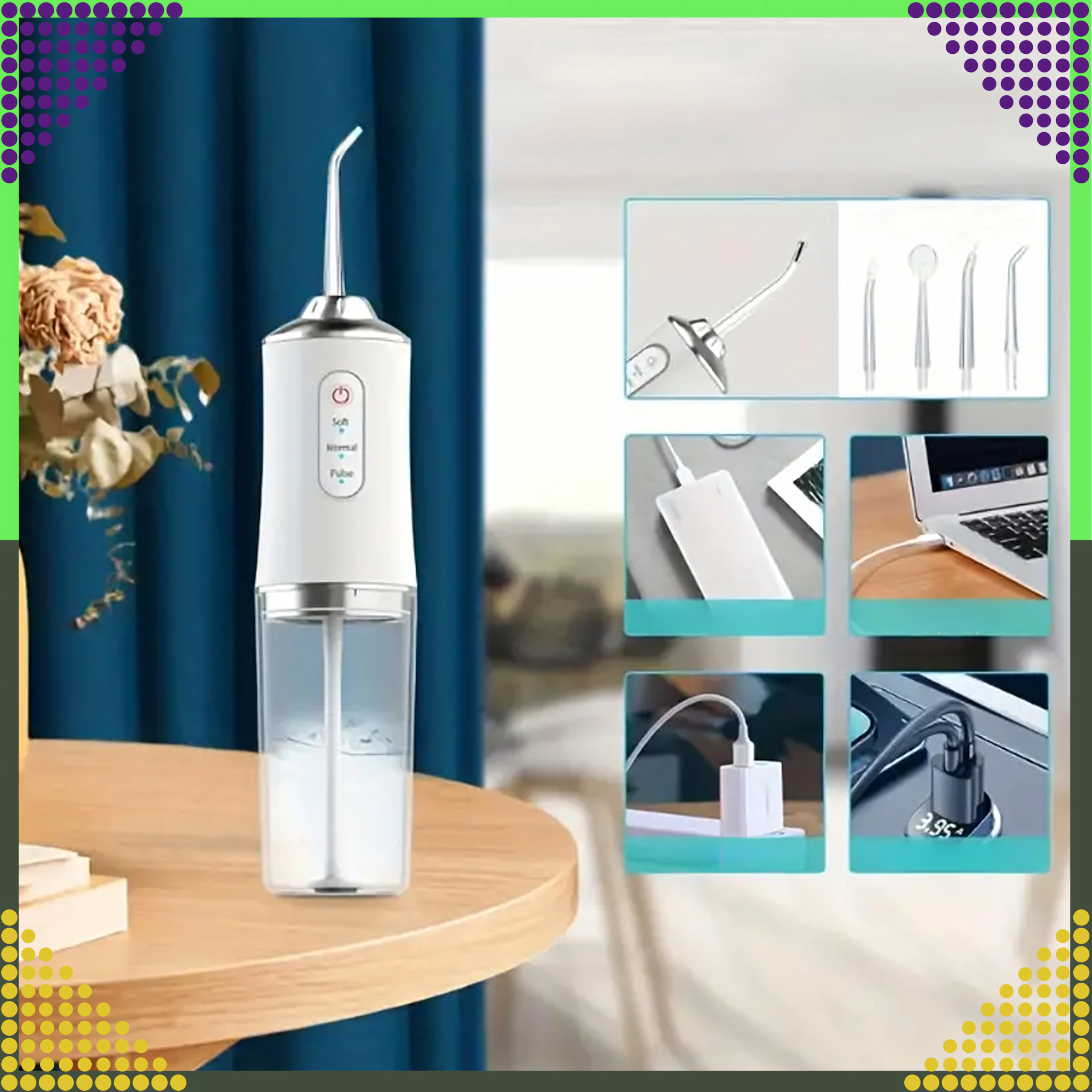 Irygator do Zębów Bezprzewodowy Dentystyczny Mocny 4 Dysze 3 Tryby 220 ml