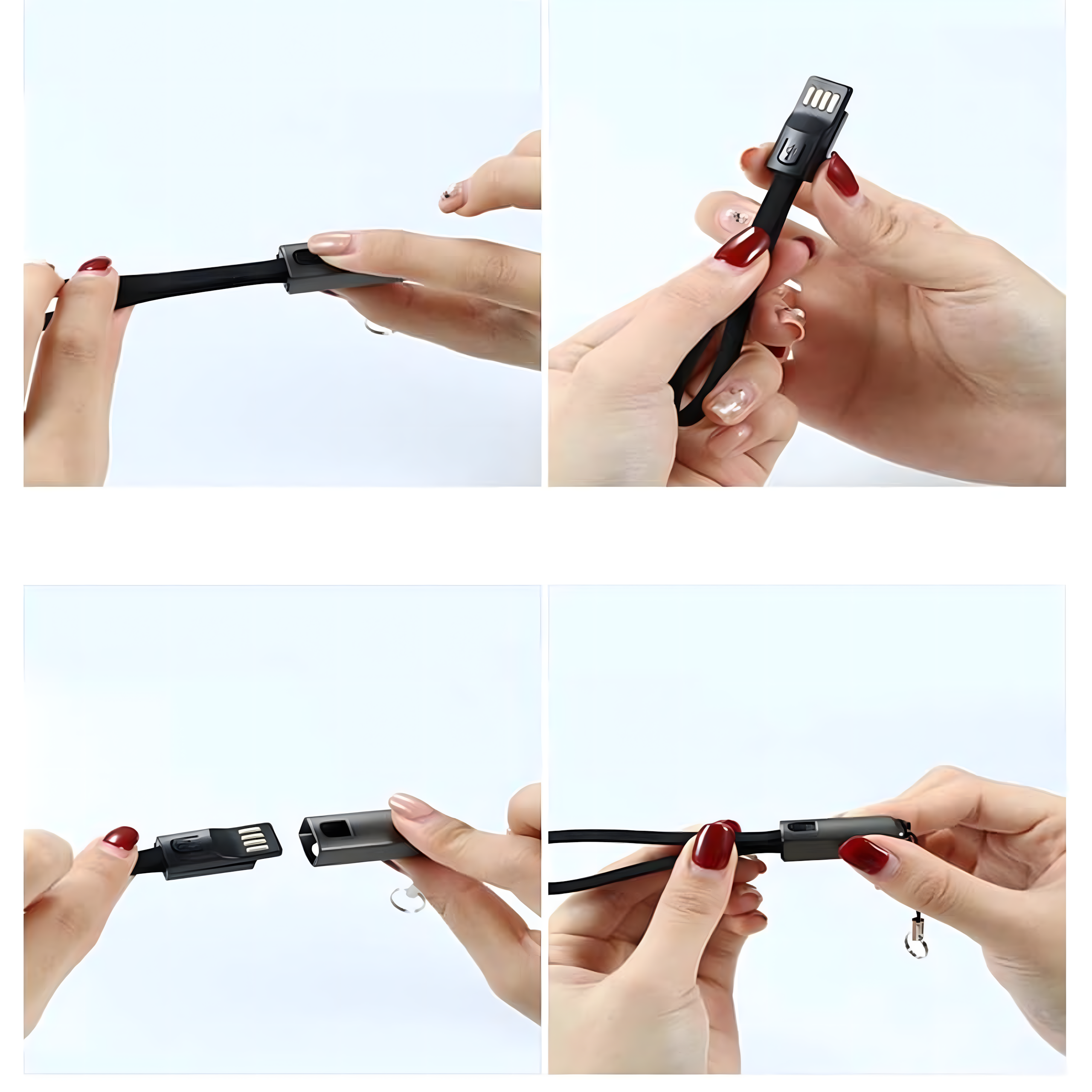 Praktyczny i nowoczesny kabel w formie smyczy z funkcją ładowania oraz transmisji danych. Doskonały dla osób, które cenią mobilność, funkcjonalność i styl!