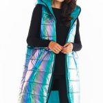 Holograficzna kamizelka z przedłużanym tyłem to idealny wybór na chłodne, jesienne dni. Jej ciekawe kolory przykują wzrok i dodadzą stylizacji charakteru. Zapinana na zamek, z dużym kapturem i pojemnymi kieszeniami. Mamy ją w 3 odcieniach: niebieskim, miętowym i różowym. Materiał: Podszewka 100% poliester.