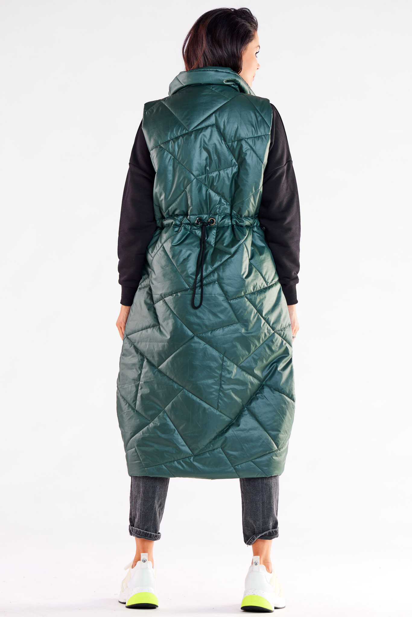 Kamizelka o opływowym, oversizowym kroju to idealny wybór na chłodne, jesienne dni. Jej oryginalny kształt może być podstawą do stworzenia wielu ciekawych stylizacji. Zapinana na zamek, dodatkowo ściągana w pasie pozwala dopasować ja do każdego rodzaju sylwetki. Kamizelka w całości na podszewce.