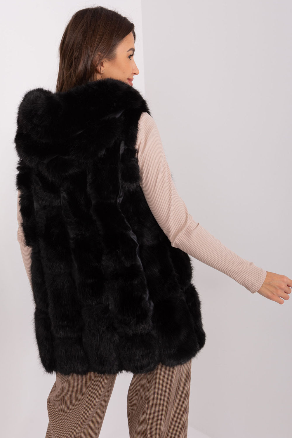 Ta kamizelka futrzana z pewnością doda elegancji i ciepła Twojej garderobie. Wykonana z trwałego poliestru, zapewnia miękkość i wygodę noszenia na co dzień. Jej standardowa długość nadaje się idealnie do różnych okazji, zarówno na co dzień, jak i na specjalne wyjścia. Kamizelka jest wyposażona w praktyczne kieszenie, które dodają jej funkcjonalności i miejsca na przechowywanie drobiazgów. Z podszewką wewnętrzną, ta kamizelka jest odpowiednia na chłodniejsze dni, zapewniając komfort i ciepło. Styl casual sprawia, że pasuje do wielu outfitów, dodając im elegancji i wyjątkowego uroku. Dodatkowo, kamizelka jest wyposażona w kaptur, który doda Ci dodatkowej ochrony przed wiatrem i zimnem. Zapięcie na zamek sprawia, że jest łatwa do założenia i zdejmowania. Ta kamizelka futrzana to doskonały wybór na każdą okazję, dodając nie tylko ciepła, ale także stylu Twojej garderobie.