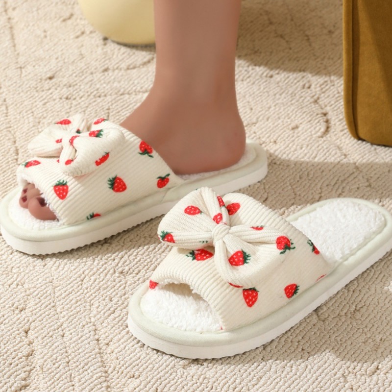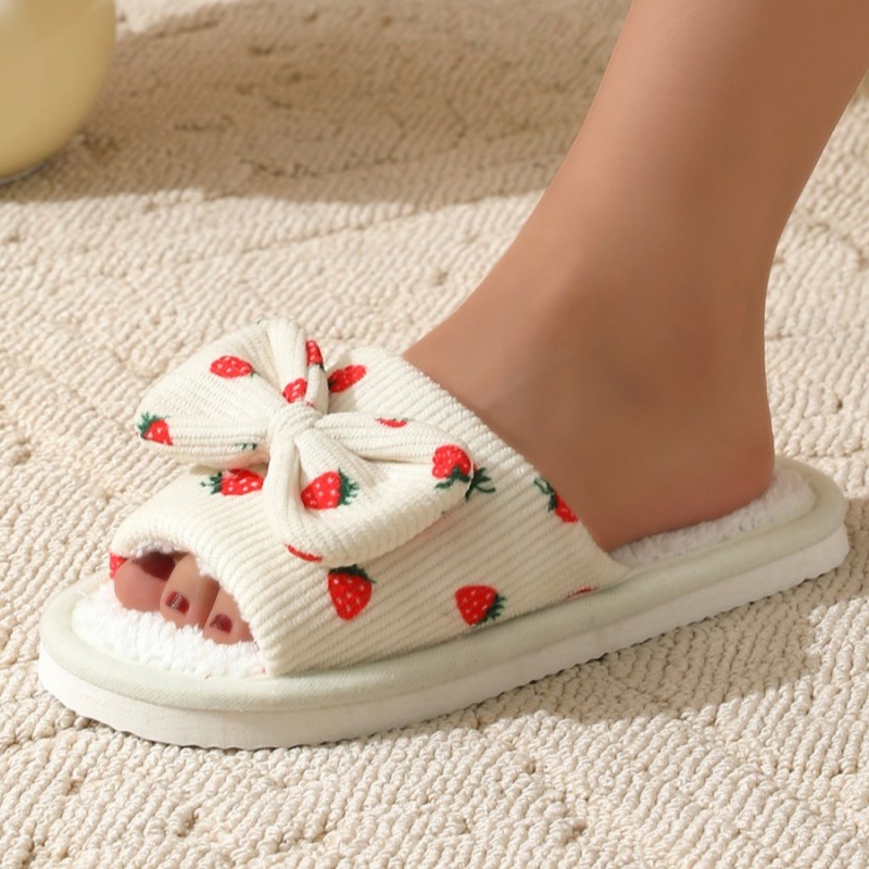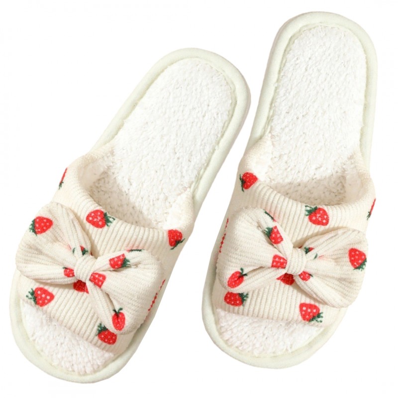 Kapcie ocieplane z kokardą, TRUSKAWKI, antypoślizgowe PAN04R39, rozmiar 39