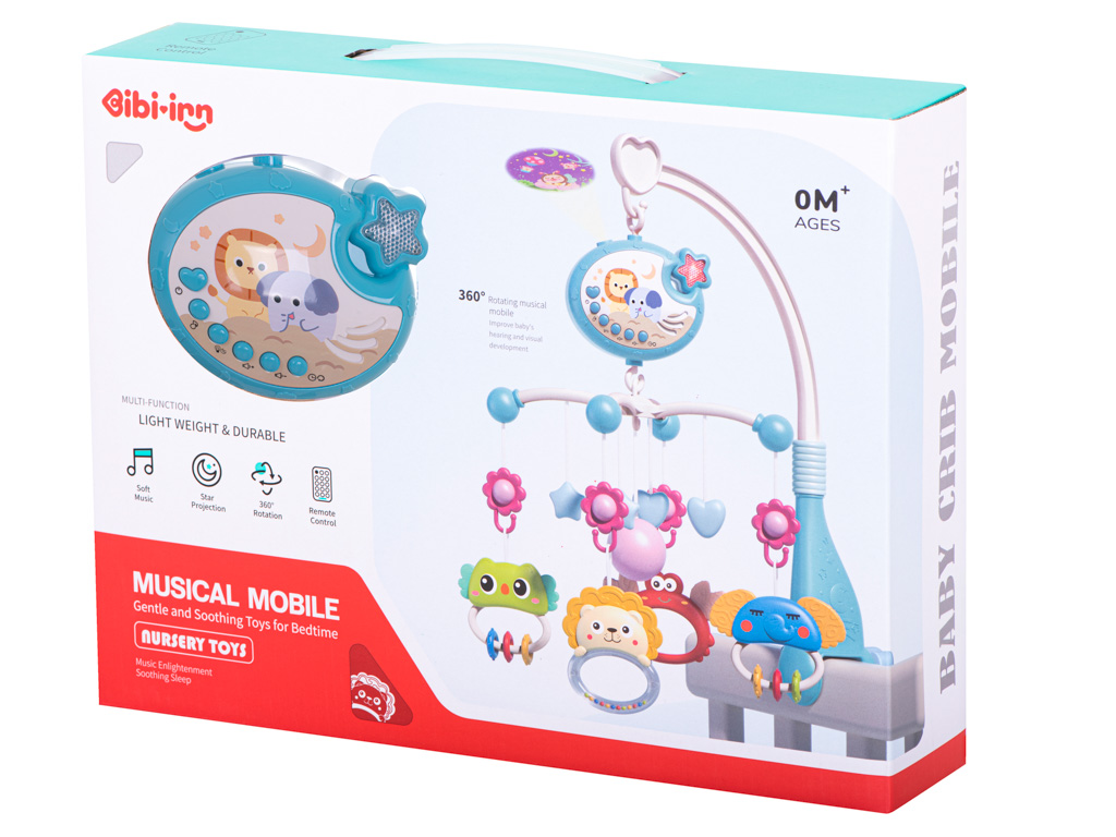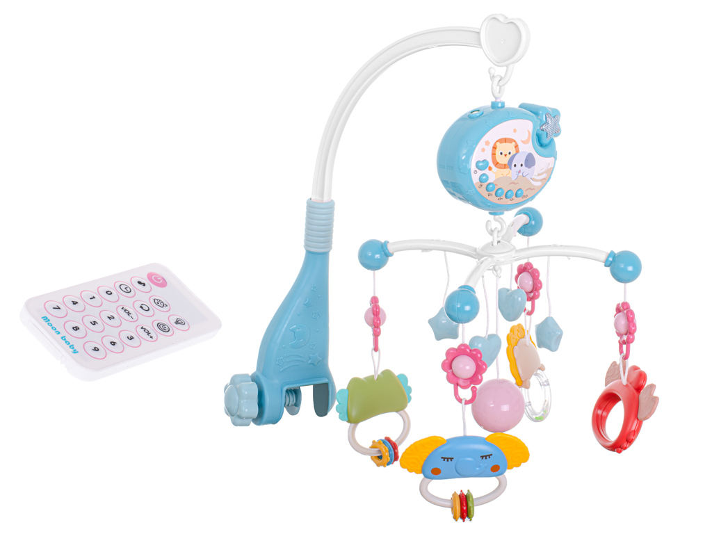 Karuzela projektor gwiazd do łóżeczka kołysanki niebieska z pilotem