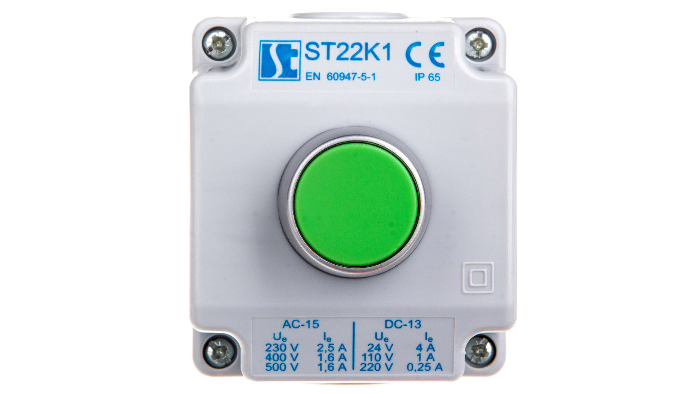 Kaseta sterownicza 1-otworowa zielony 1Z szara IP65 2x dławnica M20 szara ST22K11-2