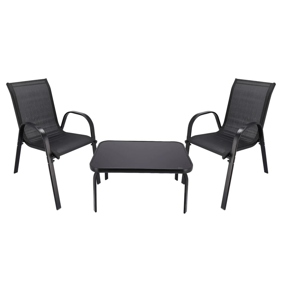 Klasyczny zestaw mebli ogrodowych Black Forest tekstylen dwa krzesła + stolik czarny