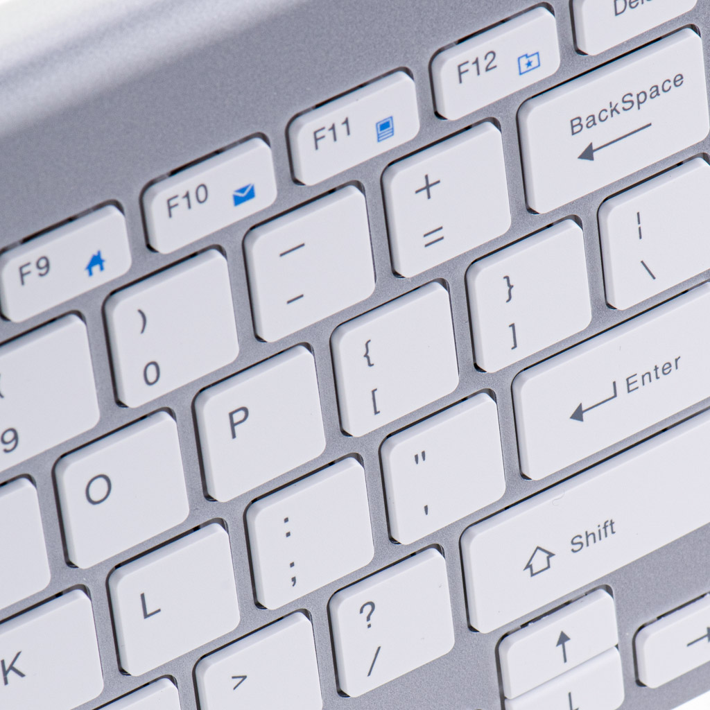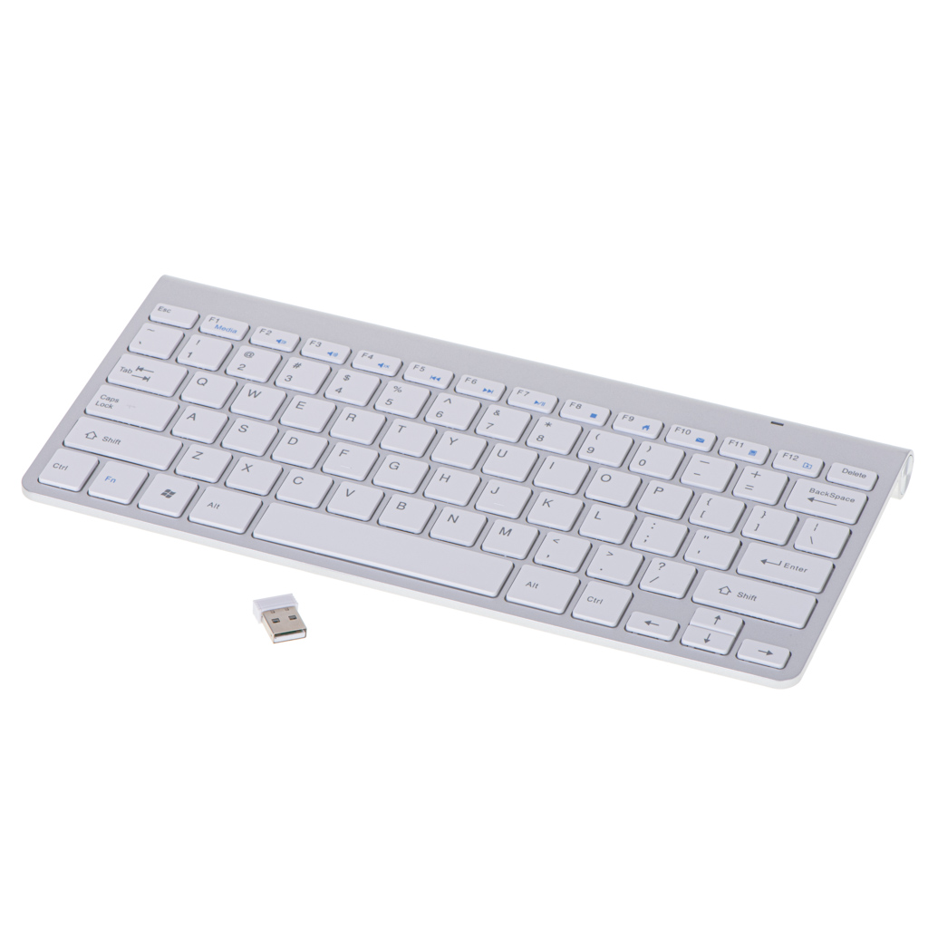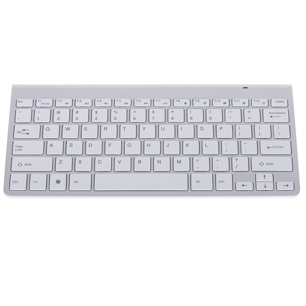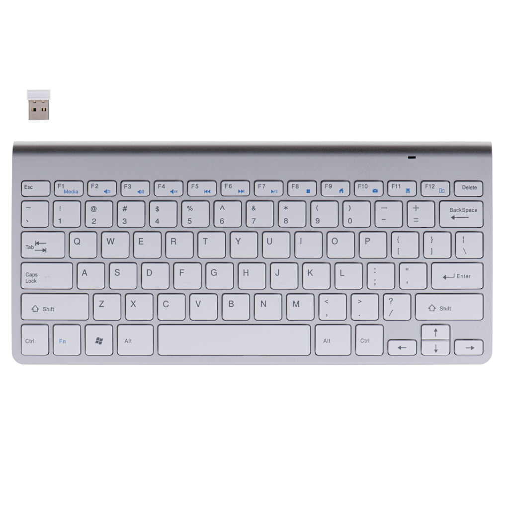 Praktyczna klawiatura bezprzewodowa. Smukły kształt i kompaktowy rozmiar zapewnią oszczędność miejsca i wygodę użytkowania. Zasilanie: 2 baterie AAA. Łączność: bezprzewodowa 2.4GHz. Interfejs: USB. Zasięg: do 10m. Kolor: srebrny. Wymiary: 28,5×13,3×1,9cm.