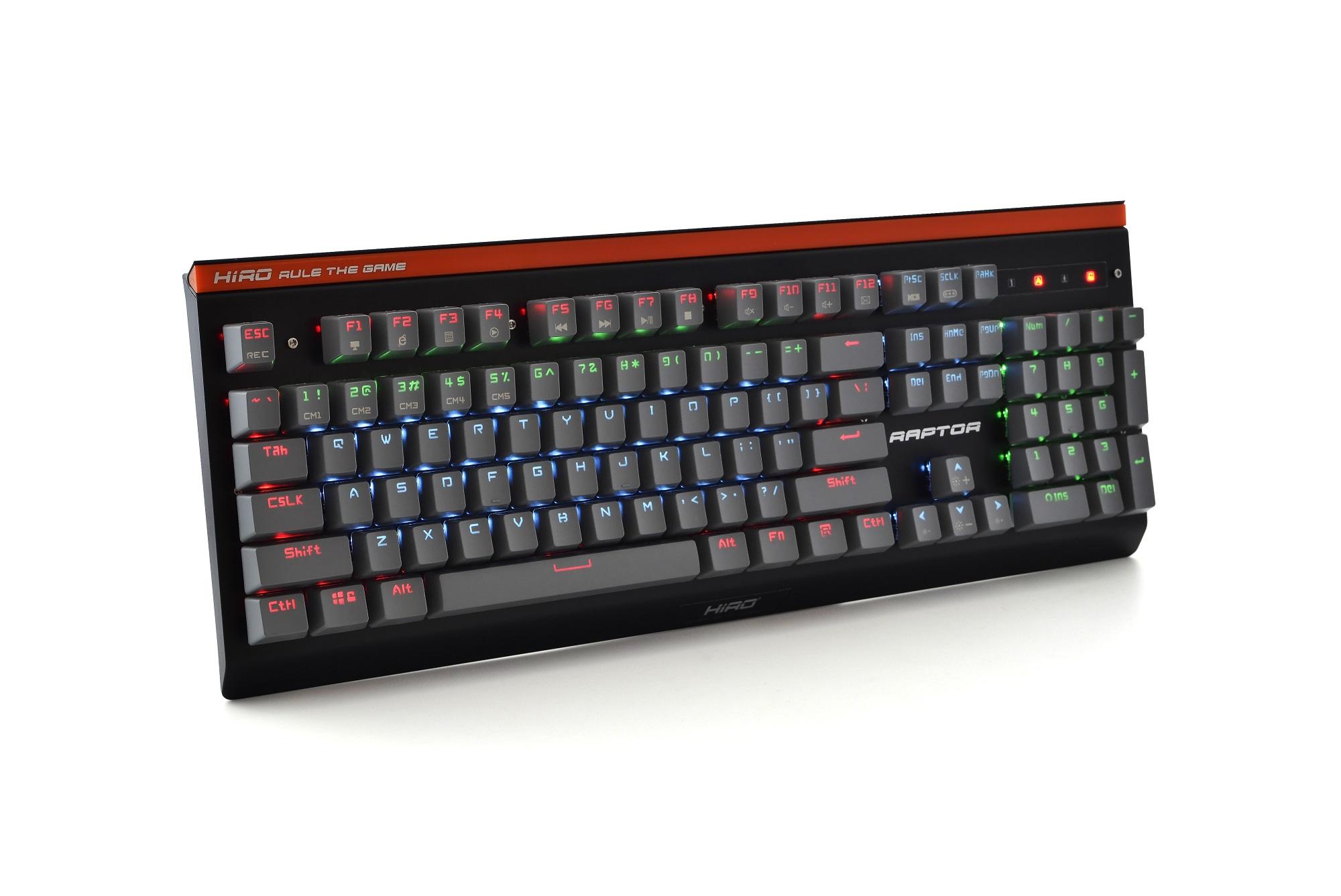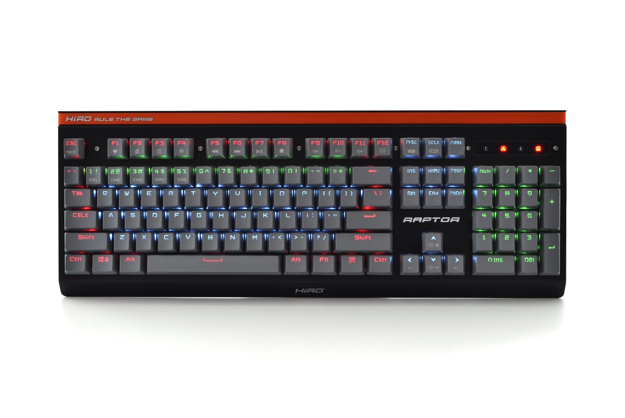 HIRO® RAPTOR to profesjonalna mechaniczna klawiatura posiadająca wymienialne, łatwo wyjmowane przełączniki i klawisze pozwalające na bezproblemowe naprawy oraz zmiany. Optyczne przełączniki zapewniają najszybszą możliwą transmisję danych. Wybieraj z pośrod 13 efektów podświetlenia w trzech różnokolorowych sekcjach. Wciśnięcie kombinacji klawiszy FN + Print key pozwala zaprogramować swój własny tryb podświetlenia Funkcje N-Key Rollover oraz Anti-Ghosting gwarantują zadowolenie każdemu graczowi. Specjalna nano-powłoka gwarantuje odporność przeciwko zalaniu. Specjalny stop aluminium wykorzystywany w awiacji zapewnia niespotykaną dotąd odporność produktu na zużycie. Wybierz HIRO® RAPTOR i zostań zwycięzcą!
