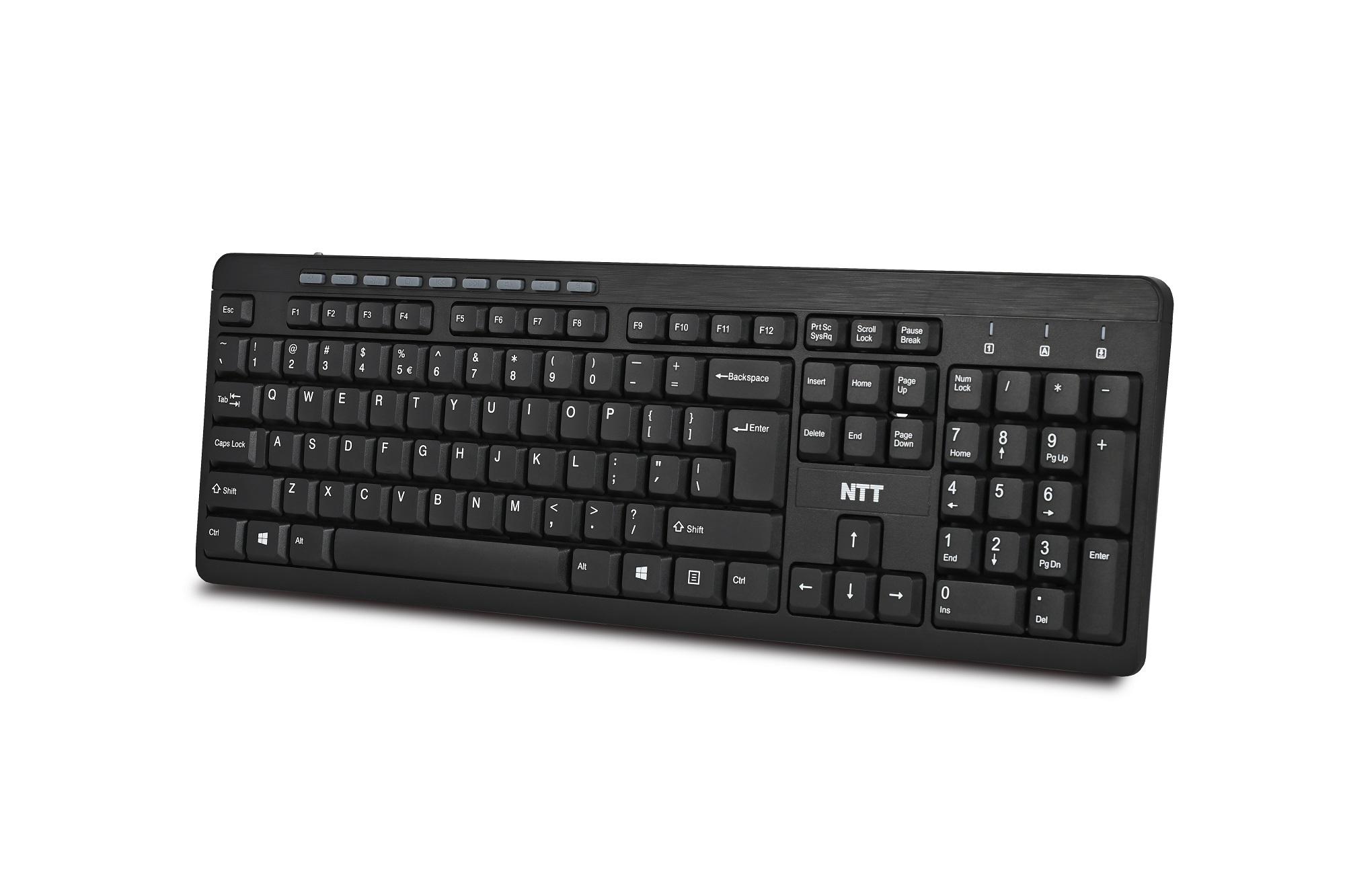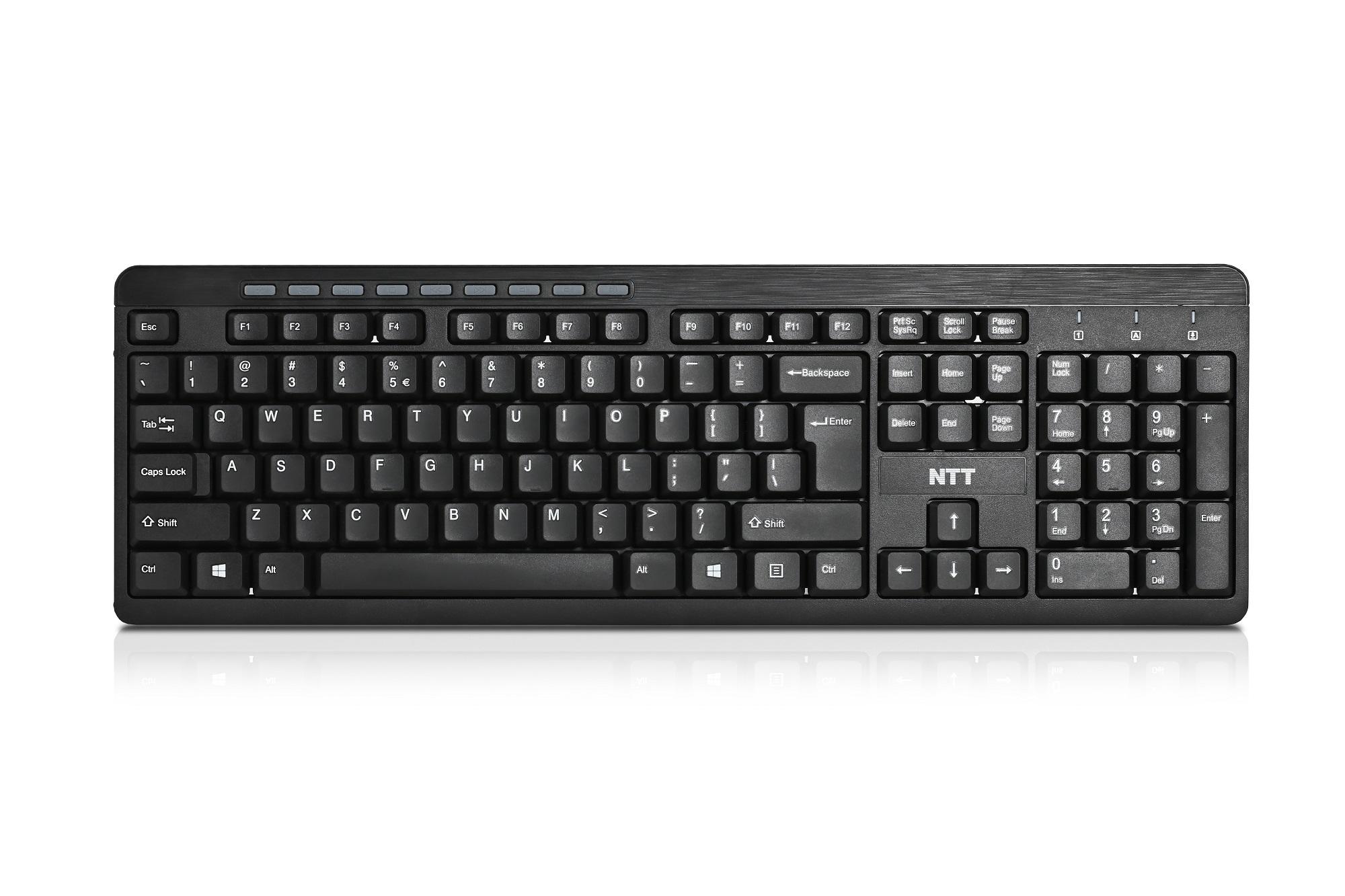 Klawiatura multimedialna NTT jest wygodną membranową klawiaturą przewodową. Posiada złącze USB, dzięki któremu będzie można ją podłączyć praktycznie do każdego komputera. Posiada 104 standardowych klawiszy i dziewięć klawiszy multimedialnych.