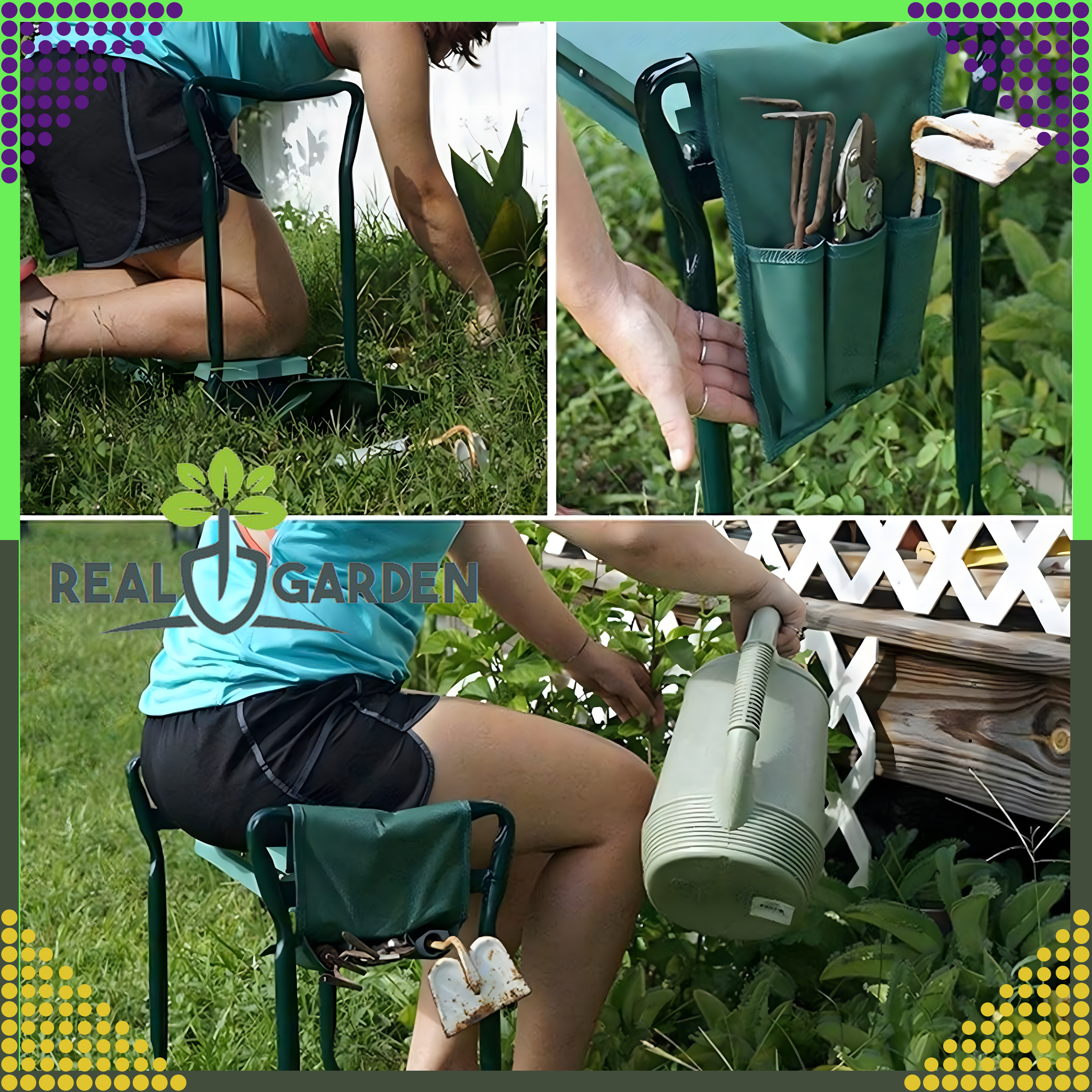 ⭐ KLĘCZNIK OGRODOWY TABORET SKŁADANY WYGODNE KRZESŁO STOŁEK 3w1 + 2 x PRZYBORNIK ⭐