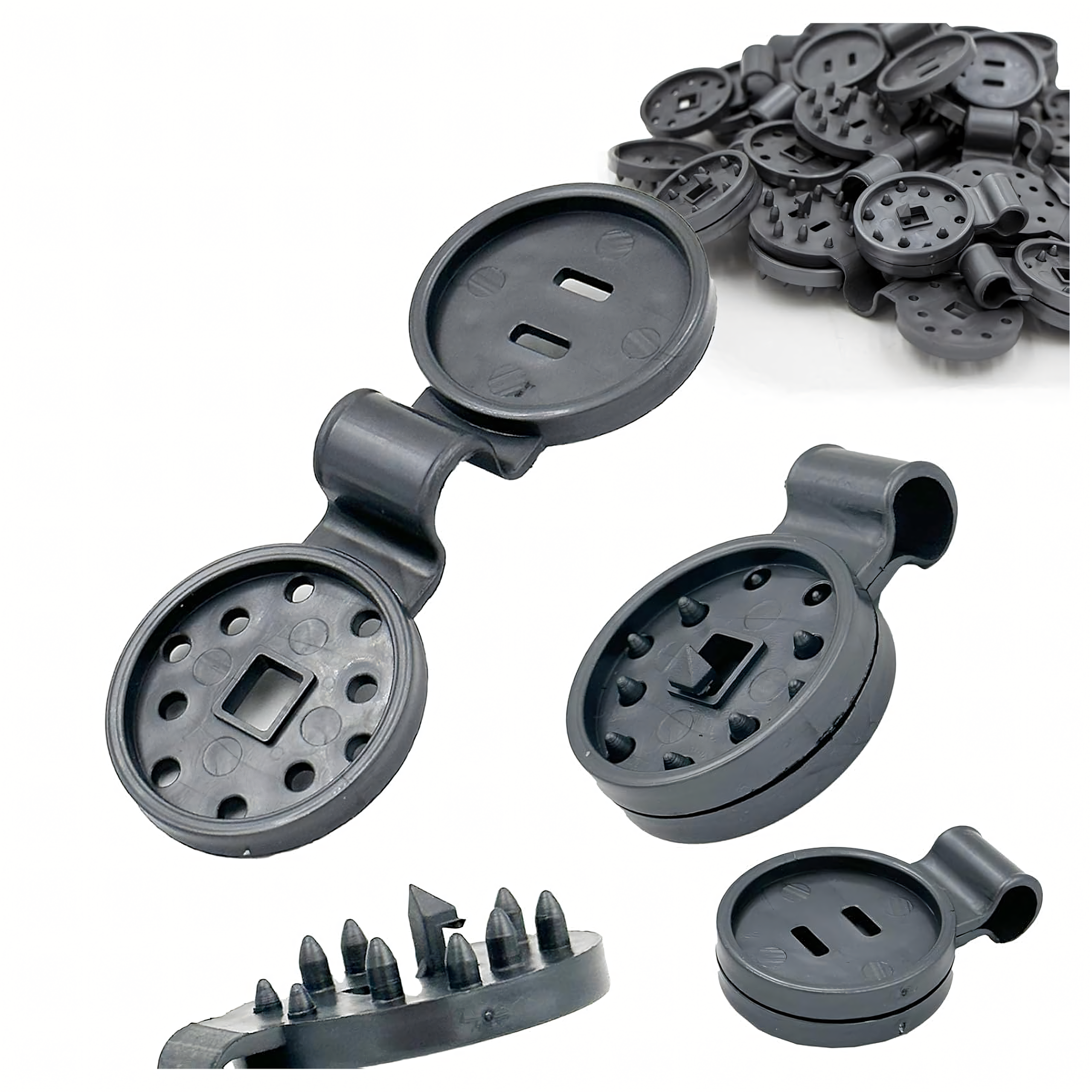 Mocne uchwyty zostały wykonane z wytrzymałego i bardzo lekkiego tworzywa sztucznego, co sprawia, że są bardzo odporne na niekorzystne warunki atmosferyczne i promieniowanie UV. Dokładnie przytwierdzają siatkę do danej powierzchni, nawet w przypadku dłuższych rolek materiału.