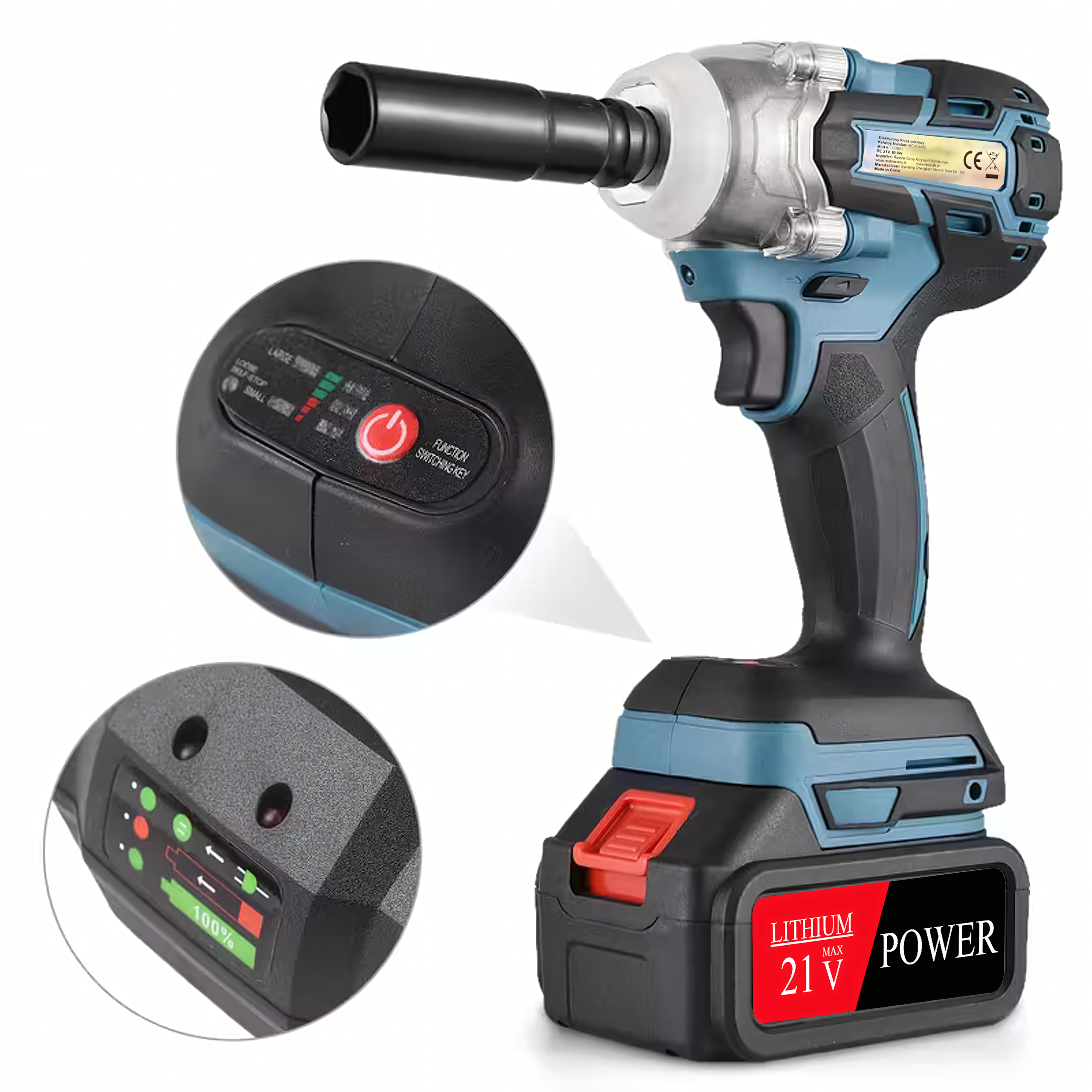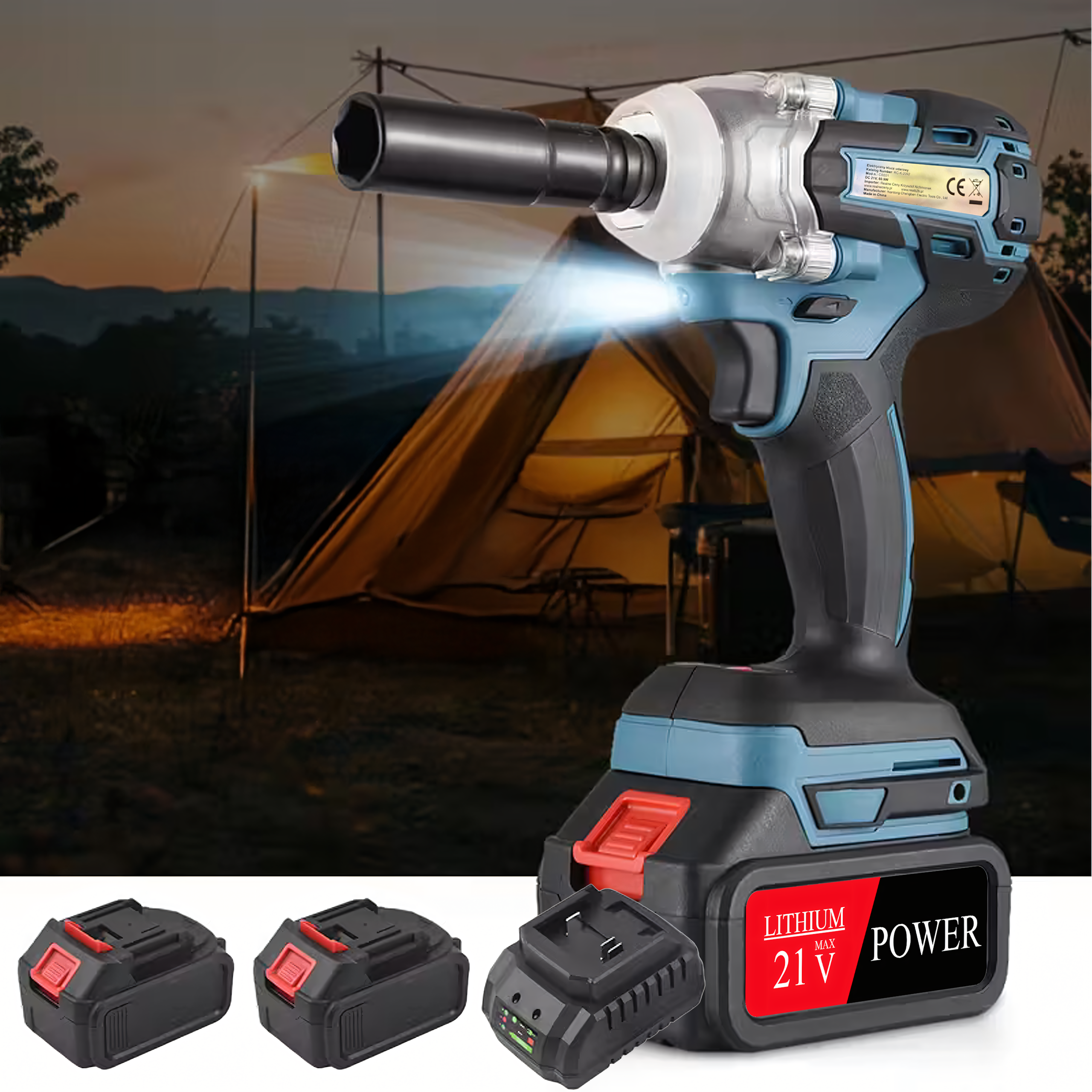 Klucz Udarowy Akumulatorowy Bezszczotkowy do Kół 21V 1/2″ 2x Akumulator