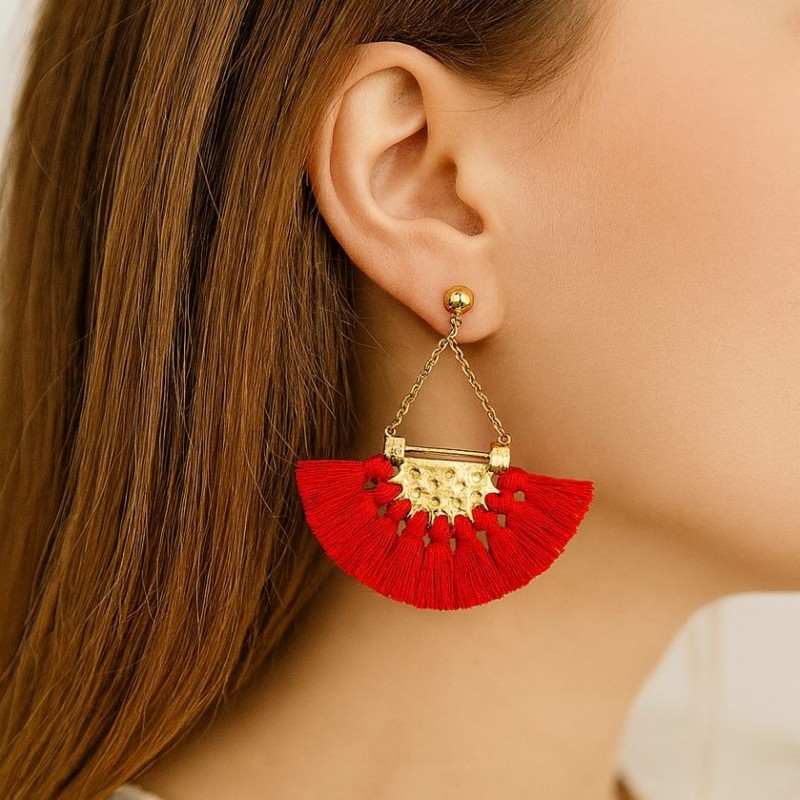 KOLCZYKI KOŁA FRĘDZLE CHWOST CZERWONE K647CZE
