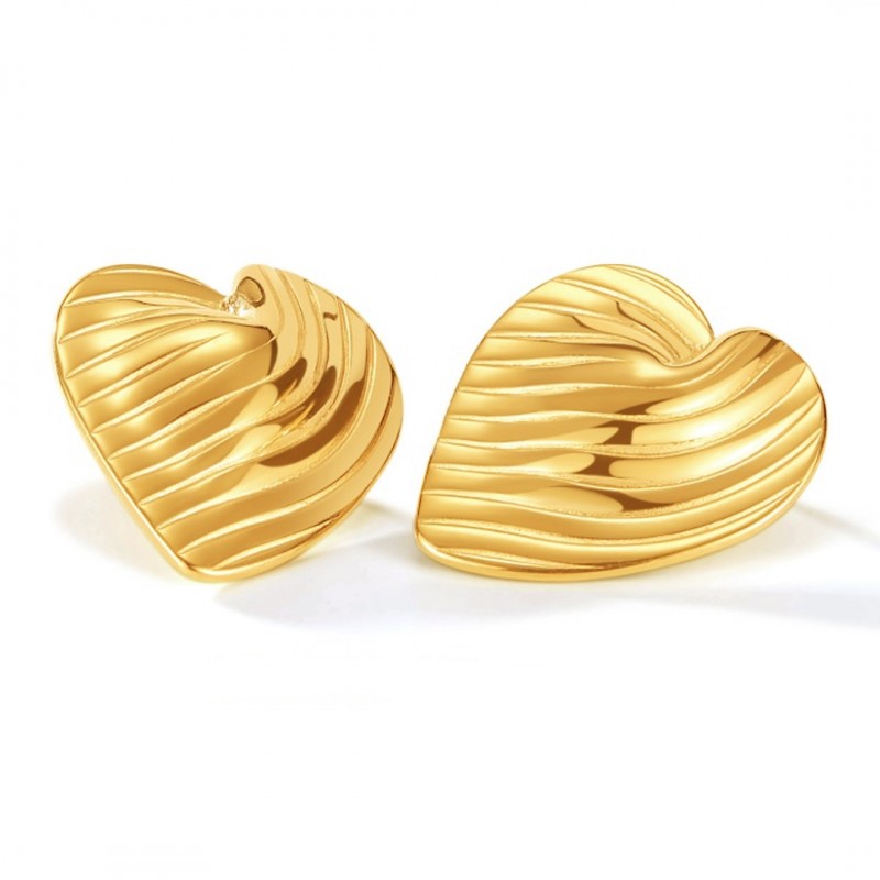 Kolczyki SERCA ze stali szlachetnej platerowane 14k złotem, ryflowane, sztyft KST3316