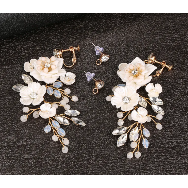 Kolczyki ślubne BOHO wizytowe wiszące z kryształkami stal szlachetna KOLS20