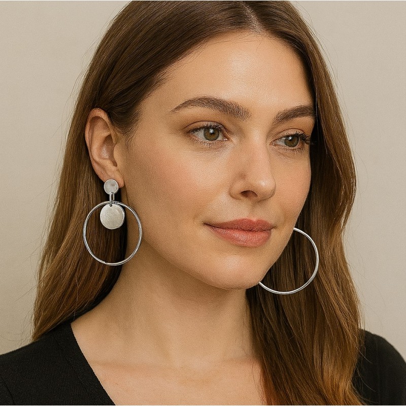 Kolczyki srebrne koła potrójne, sztyft K928S