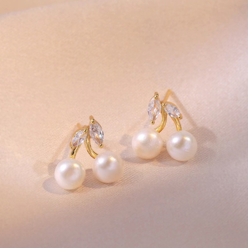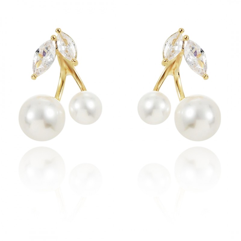 Kolczyki WISIENKI ze stali szlachetnej pozłacanej 14k złotem cyrkonie, sztyft srebro S925 perły KST3334