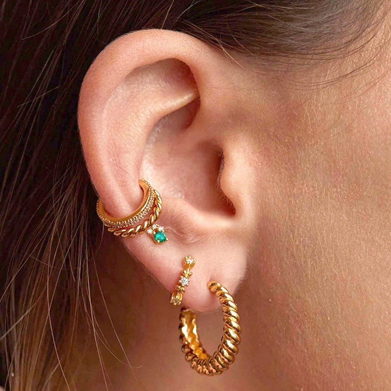 Kolczyki ze stali chirurgicznej platerowanej 14 karatowym złotem, sztyft srebro S925