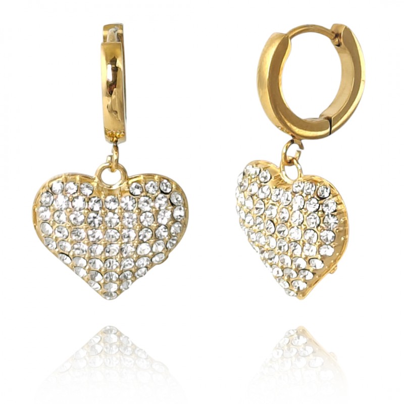 Kolczyki ze stali szlachetnej platerowane 14k złotem SERCA cyrkonie KST3348