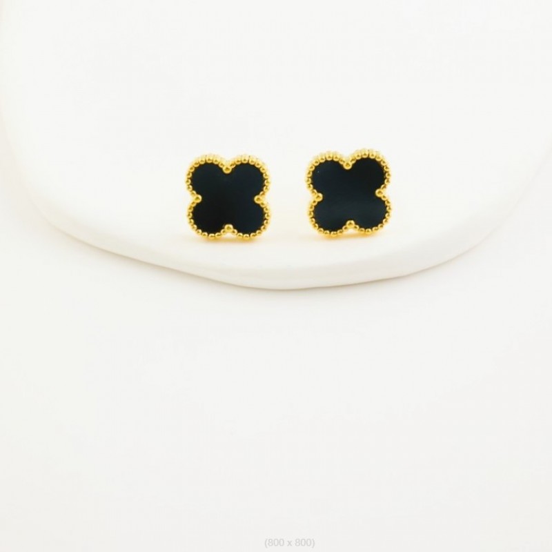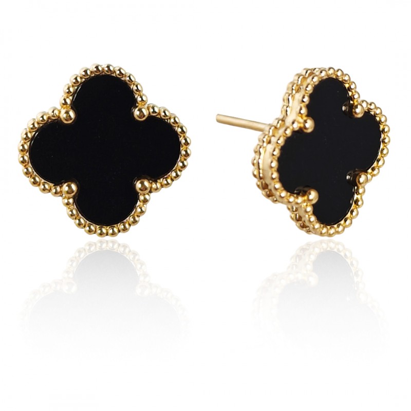Kolczyki ze stali szlachetnej platerowane 14k złotem, sztyft, Koniczynka czarna KST3377