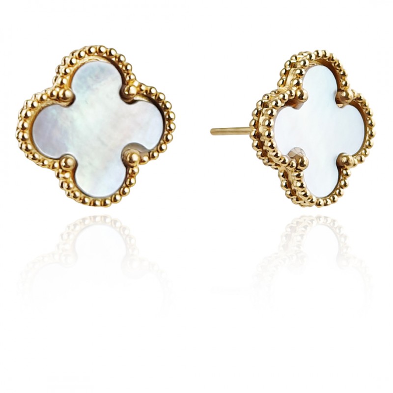 Kolczyki ze stali szlachetnej platerowane 14k złotem, sztyft, masa perłowa KST3370