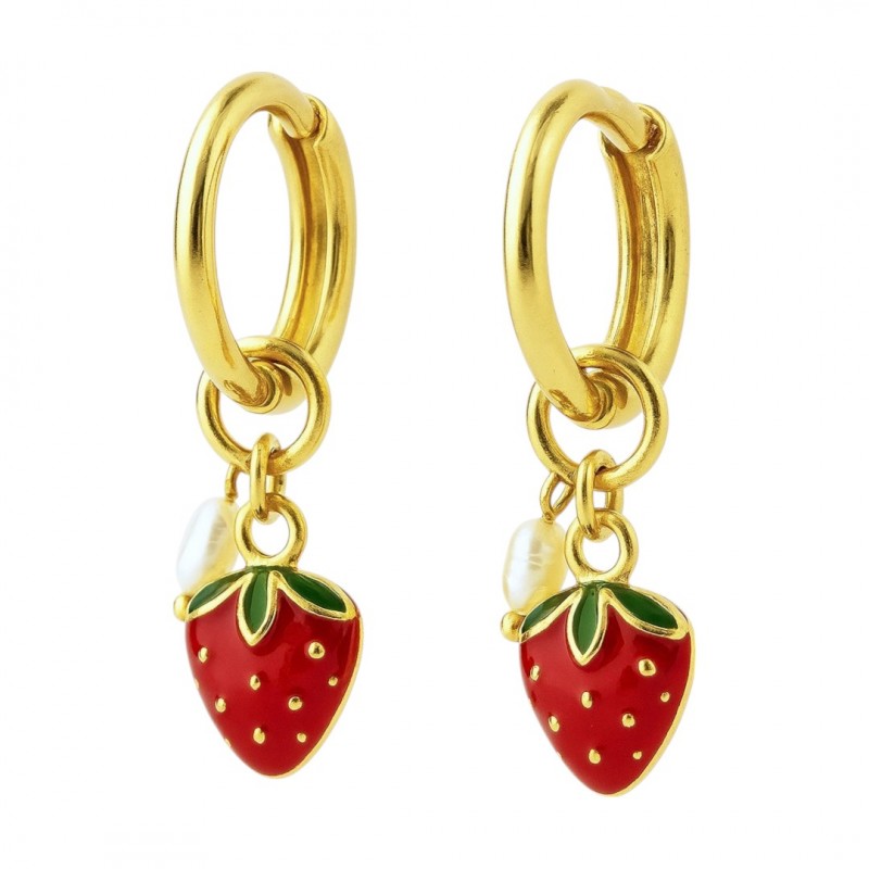 Kolczyki ze stali szlachetnej platerowane 14k złotem, TRUSKAWKI wiszące czerwone KST3406