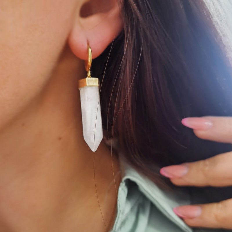 Kolczyki ze stali szlachetnej pozłacanej 14k złotem kryształ górski KST2904B