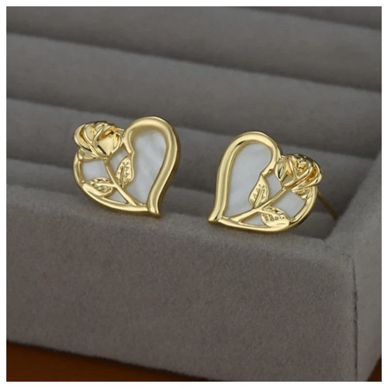 Kolczyki ze stali szlachetnej pozłacanej 14k złotem, SERCE RÓŻA sztyft srebro S925 KST3368