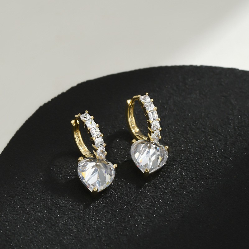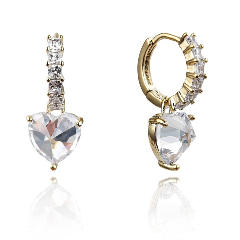 Kolczyki ze stali szlachetnej pozłacanej 14k złotem z cyrkoniami, SERCE KST3328