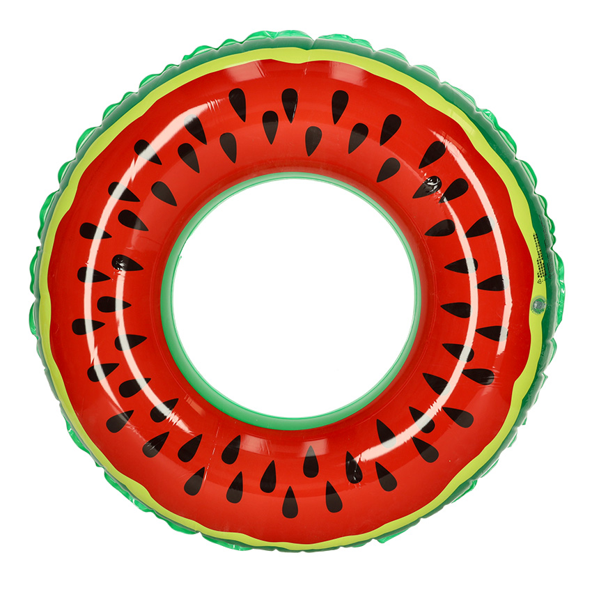 Nadmuchiwane koło plażowe o wzglądzie arbuza. Żywe, przyciągające wzrok kolory zachęcą Twoje dziecko do korzystania z kąpieli wodnych. Doskonale sprawdzi się podczas wypoczynku nad wodą. Materiał: PVC.
