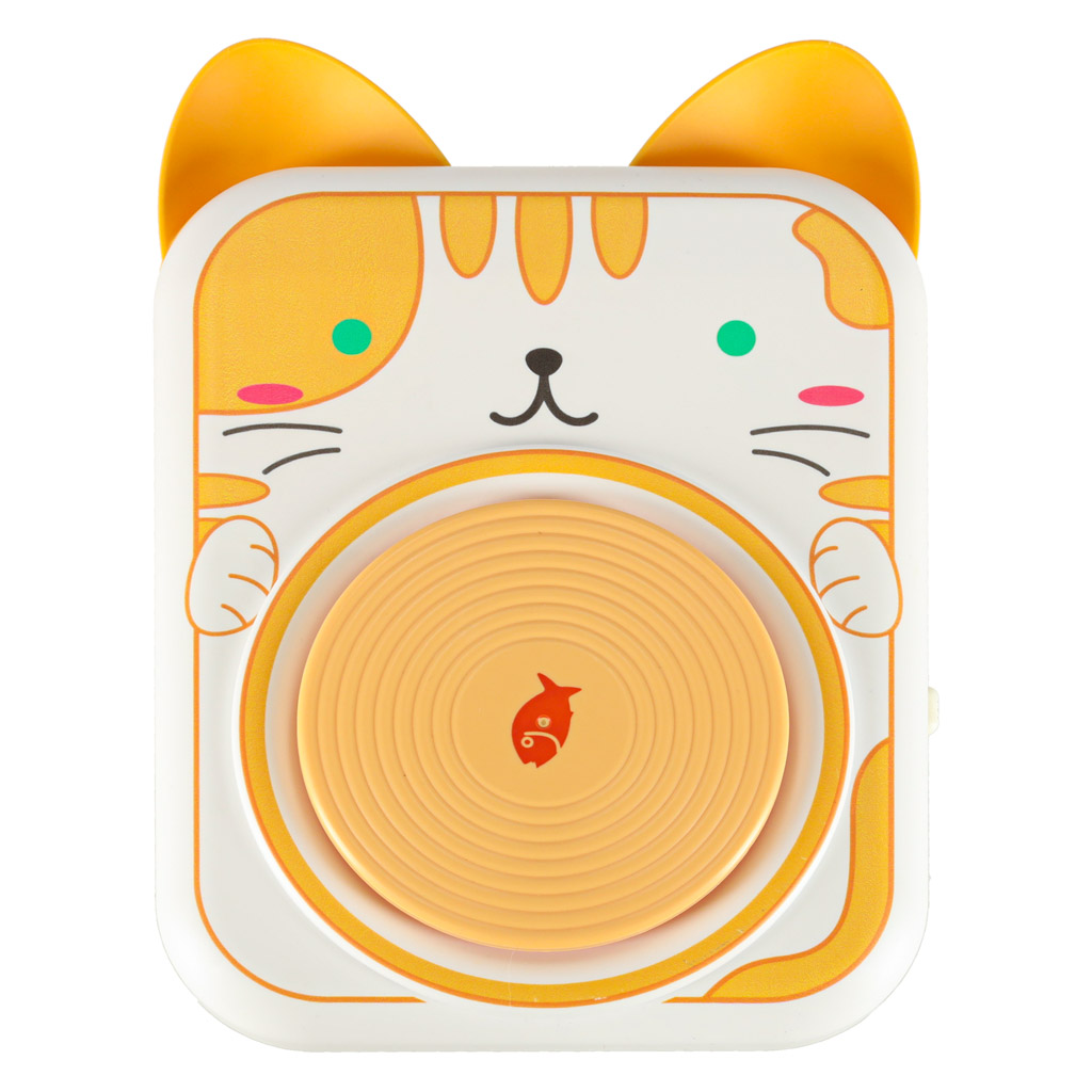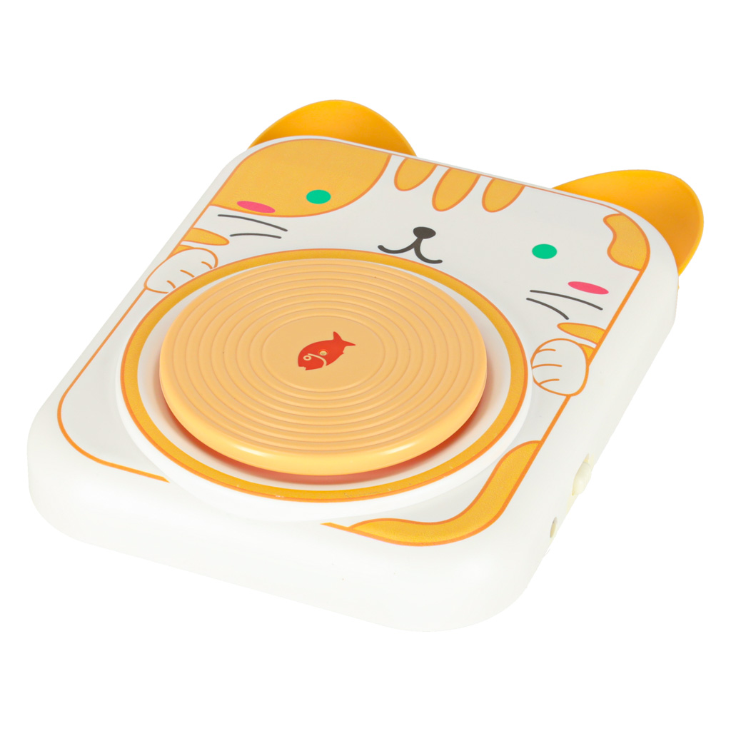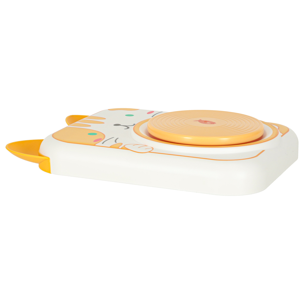 Elektryczne koło garncarskie dla dzieci zasilane przez USB, średnica koła 12,7 cm, zestaw zawiera glinę, 6 farb, 2 pędzelki, 4 narzędzia, fartuszek i instrukcję. Stabilna podstawka z motywem kotka. Dla dzieci 3+. Rozwija zdolności manualne.
