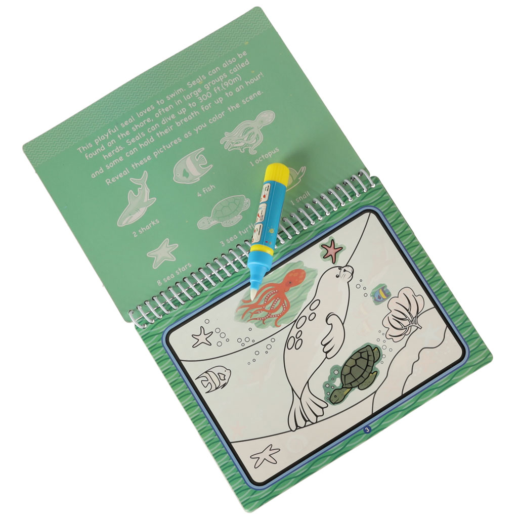 Fantastyczna kolorowanka dla dzieci. Nie potrzebujesz kredek i farb, aby nadać kolory obrazkom. Dziecko może malować samą wodą. Wystarczy napełnić wodą mazak dołączony do zestawu. Książeczka zawiera 4 różne obrazki do pokolorowania. Wymiary:19x15cm