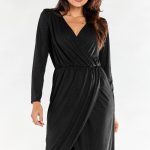Kombinezon z szerokimi spodniami i kopertową górą, marszczony szeroką gumą w pasie. Kombinezon uszyty na elastycznej podszewce. Kombinezon wyprodukowany w Polsce.