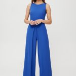 Ten wyjątkowy kombinezon to kwintesencja nowoczesnej elegancji, stworzony z najwyższej jakości tkaniny, która łączy w sobie komfort i styl. Fason kombinezonu jest dopasowany górą, podkreślając subtelnie kobiecą sylwetkę, jednocześnie pozostawiając miejsce na swobodę ruchów. Bezrękawnikowy design sprawia, że kombinezon jest idealnym wyborem na cieplejsze dni, pozwalając jednocześnie na swobodne eksponowanie ramion. Szerokie nogawki z obszernymi zakładkami dodają mu unikalnego charakteru, jednocześnie będąc modnym akcentem, który przyciąga uwagę. Boczne kieszenie nie tylko nadają kombinezonowi swobodnego charakteru, ale również sprawiają, że jest praktyczny i funkcjonalny. Dają one możliwość przechowywania drobnych przedmiotów, jednocześnie zachowując elegancki wygląd. Ten kombinezon został zaprojektowany i uszyty w Polsce, co podkreśla tradycję krawiecką oraz dbałość o najwyższą jakość wykonania. To nie tylko ubranie, to również wyraz polskiej precyzji i pasji do mody. Kombinezon ten stanowi idealny wybór dla kobiet, które cenią sobie wygodę, styl i oryginalność.