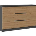 Zdjęcia zestawów przedstawiają przykładową aranżację z innymi meblami z kolekcji. Pozostałe bryły są dostępne w osobnej sprzedaży., Obrzeża – wykończone tworzywem ABS (charakteryzującym się dużą wytrzymałością mechaniczną i chemiczną), Powierzchnię mebla czyścić przy pomocy miękkiej szmatki. Unikać stosowania silnie działających środków chemicznych, Płyta wiórowa laminowana wyróżnia się odpornością na naprężenia mechaniczne i ekstremalne temperatury, Meble do samodzielnego montażu, Szuflady – na prowadnicach rolkowych to gwarancja wygodnego, a przede wszystkim bezpiecznego użytkowania.