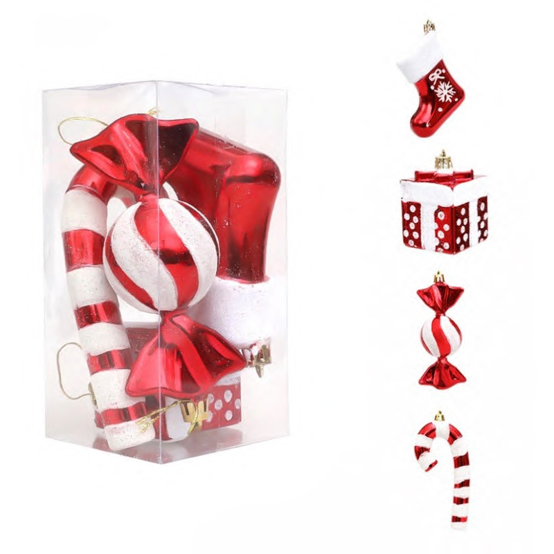 Komplet bombek cukierki 4 szt XL czerwone w opakowaniu, bombki na choinkę BSN51