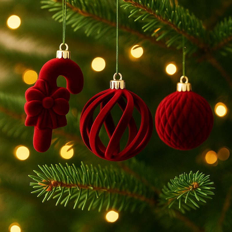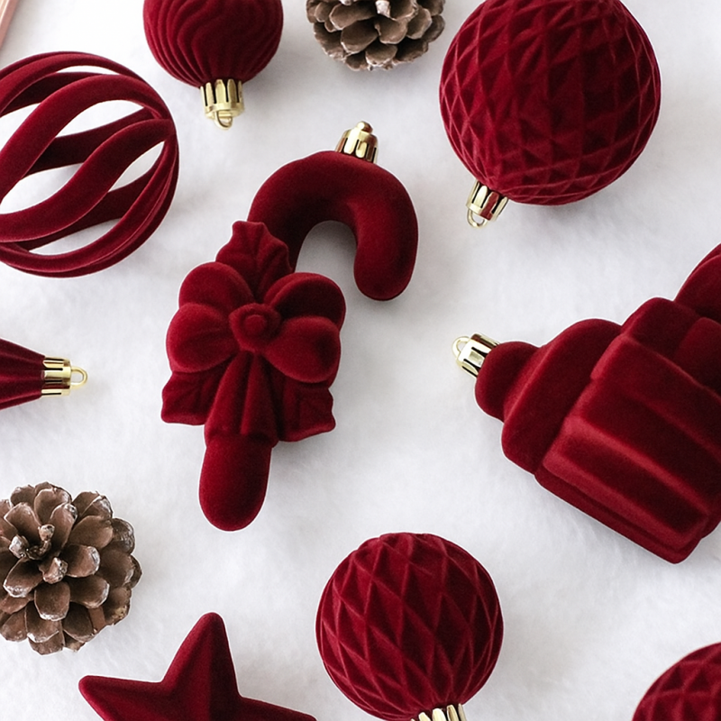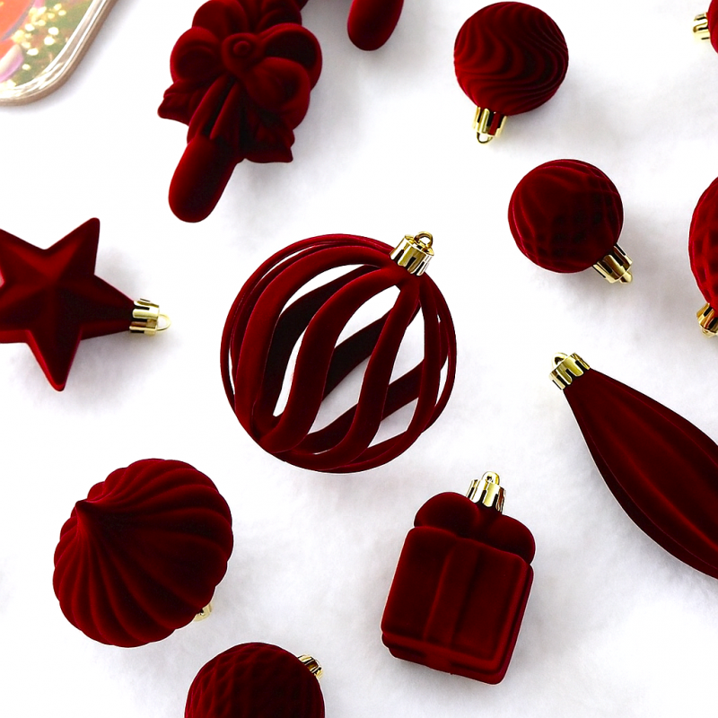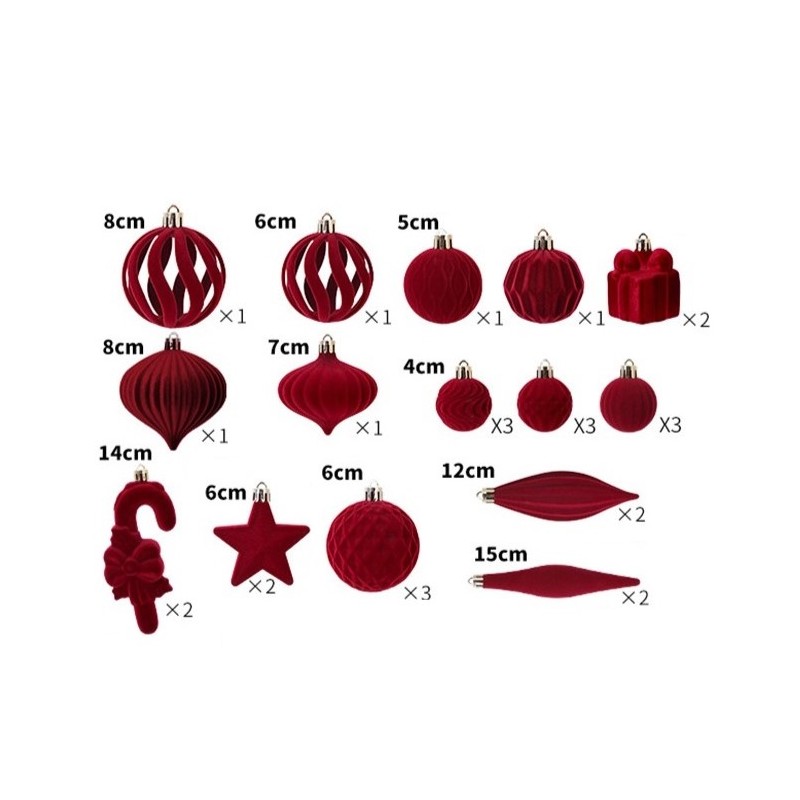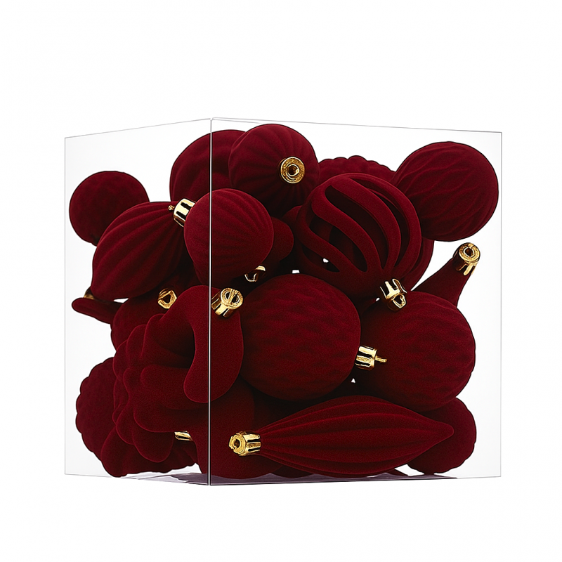 Komplet bombek na choinkę w opakowaniu, bombki welurowe 28szt. bordowe BSN76
