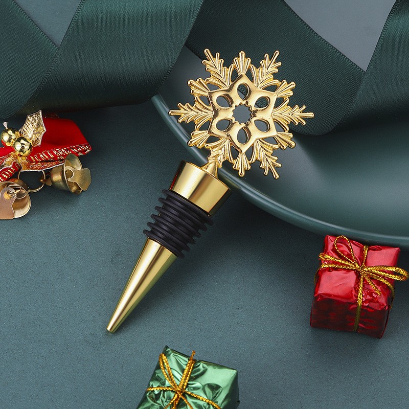 Korek, zatyczka do wina złota świąteczna ŚNIEŻYNKA BOŻE NARODZENIE AB05