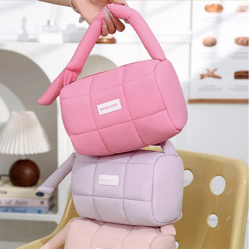 Kosmetyczka damska pikowana kuferek z rączką 18,5 x 12,5 x 13 cm KS140FIO