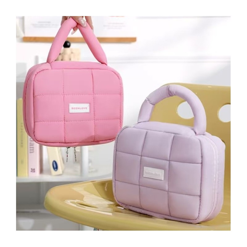 Kosmetyczka damska pikowana kuferek z rączką 21 x 17 x 8 cm KS139FIO