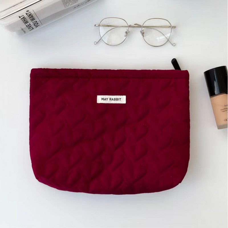 Kosmetyczka jednokomorowa pikowana serca bordowa 25 x 5 x18 cm KS120BOR