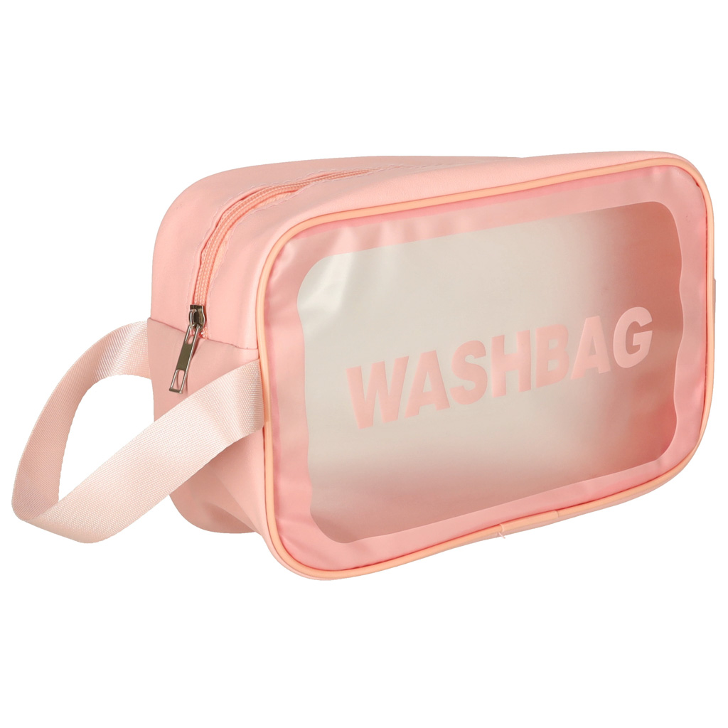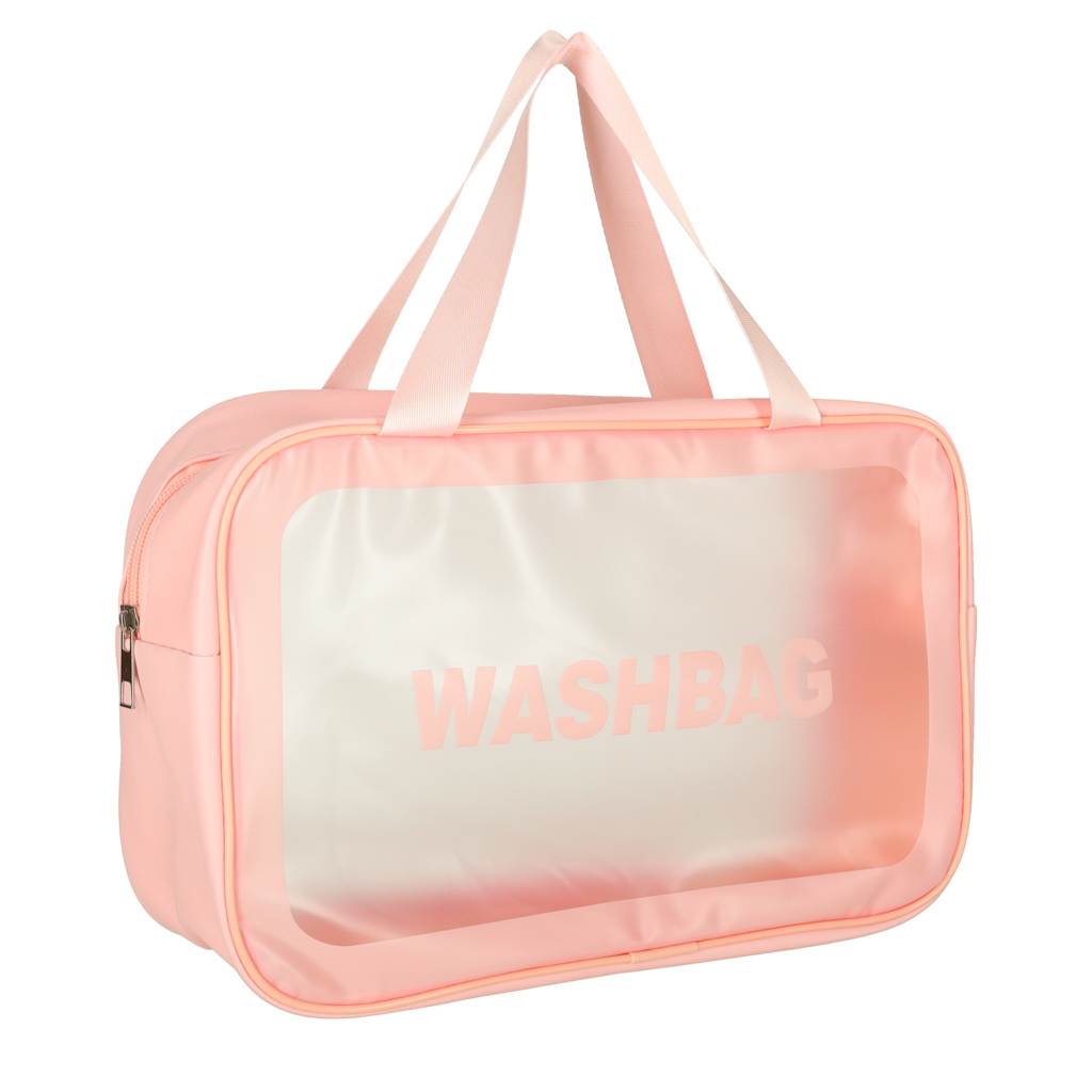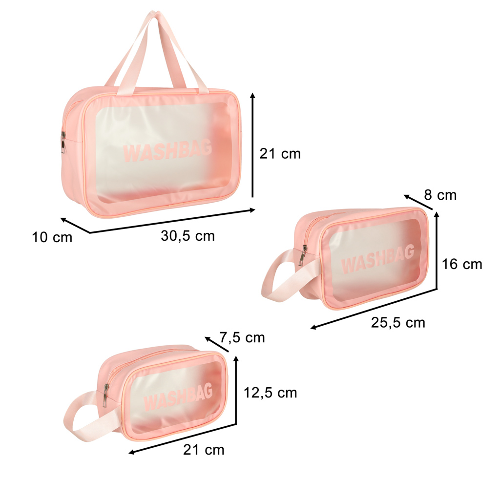 Zestaw trzech kosmetyczkach w różnych rozmiarach idealnych na podróż oraz do organizacji ulubionych kosmetyków. Wykonane z wodoszczelnego materiału. Zapinane na suwak. Kolor: różowy. Wym. największej kosmetyczki: 30,5 cm x 10 cm x 21 cm.