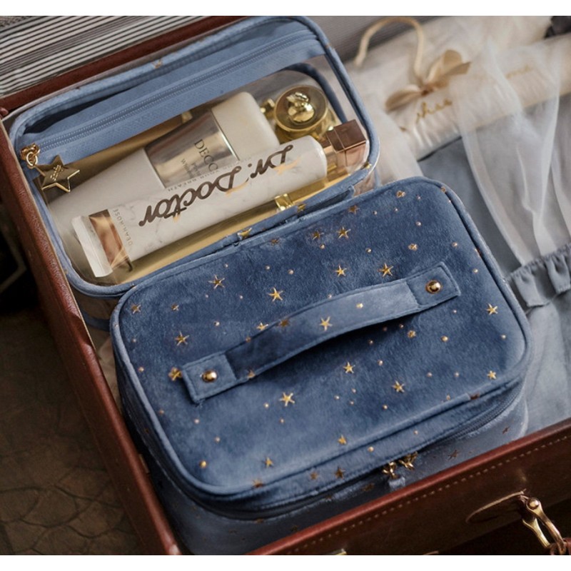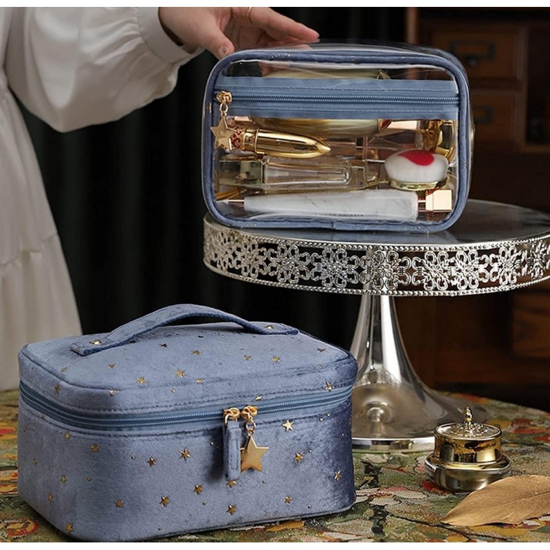 Organizer na kosmetyki / kosmetyczka podróżna 2 w 1 Modny dodatek na podróż – 2 rozkładane kosmetyczki z gwiezdnymi motywami