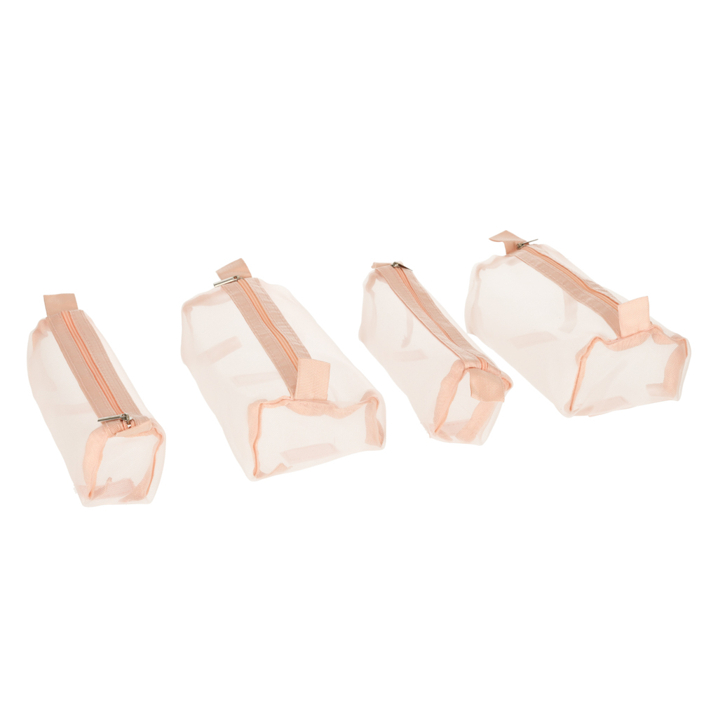 Różowa kosmetyczka podróżna. Można ją zwinąć w rulon, dzięki czemu zajmuje mniej miejsca w bagażu. Posiada cztery przegródki, które można wypiąć. Ścianki z siatki ułatwiają znalezienie kosmetyków. Długość kosmetyczki: 53 cm. Tworzywo: poliester.
