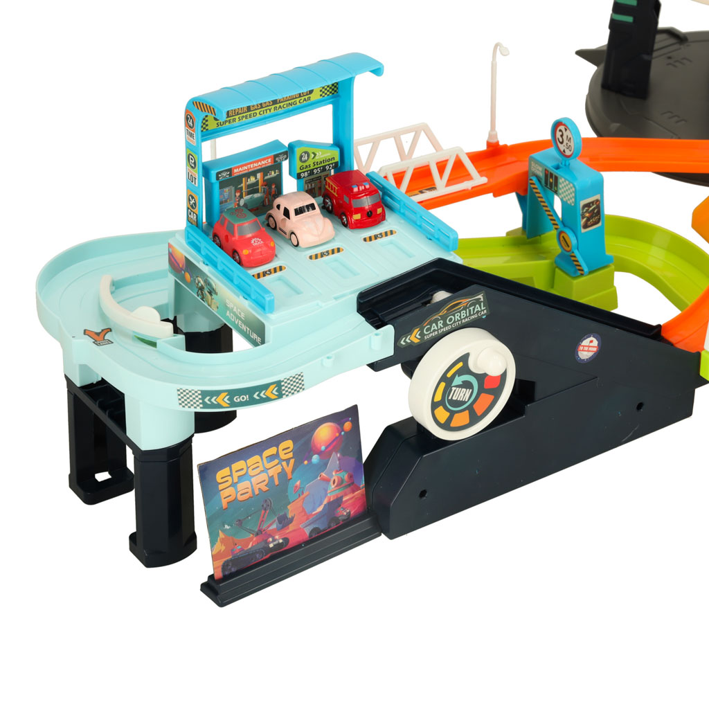 Kosmiczny tor samochodowy wielopoziomowy kierownica