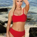 – Środek biustonosza z elegancką, błyszczącą wstawką, w zależności od wybranego koloru kostiumu pasek jest srebrny, złoty lub miedziany.