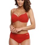Jeden z najlepszych kostiumów kąpielowych kolekcji Lato 2019! Piękna kolorystyka, modny krój, wysokie figi i biustonosz z push-up-em. Zamów go i zaplanuj swój idealny urlop! Biustonosz jest wygodnie wiązany na szyi i plecach, posiada usztywniane miseczki, które wzbogacono push-up-em, dzięki czemu piersią są idealnie zebrane, uniesione i powiększone (wypełnienie push-up występuje w każdym rozmiarze kostiumu i nie jest wyjmowane z modelu). Przy dekolcie prześwit wykonany z czarnego, gładkiego tiulu. Na miseczkach wstawka z tkaniny imitującej zmysłową koronkę. Figi to prawdziwy hit są wyższe, a dzięki temu bardzo wygodne, maskują także brzuszek, a dzięki paskom-gumkom po bokach wciąż wyglądają kobieco i kusząco. Włoska tkanina, piękne kolory do wyboru. Skuś się, bo warto.