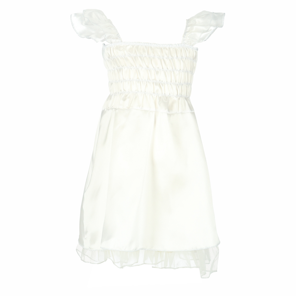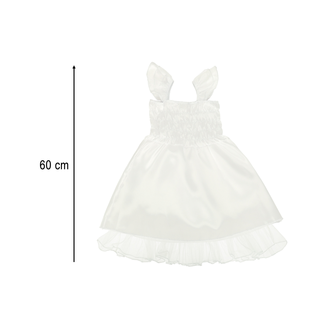 zawiera krótką, białą sukienkę z tiulowym wykończenie, opaskę z
