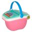 Wiek dziecka: 3+. Kolorystyka: różowy, seledynowy, biały, niebieski. Materiał: tworzywo sztuczne (cerata: elastyczne tworzywo, lekko gumowane). Wymiary kosza (góra): 19 × 24 cm. Wymiary spodu kosza: 17 × 14 cm. Wysokość kosza: 14,7 cm. Wysokość z rączką: