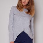 Koszula o dopasowanym kroju z długim rękawem, bez kołnierzyka. Koszula posiada dekolt w serek, jest zapinana na napy.